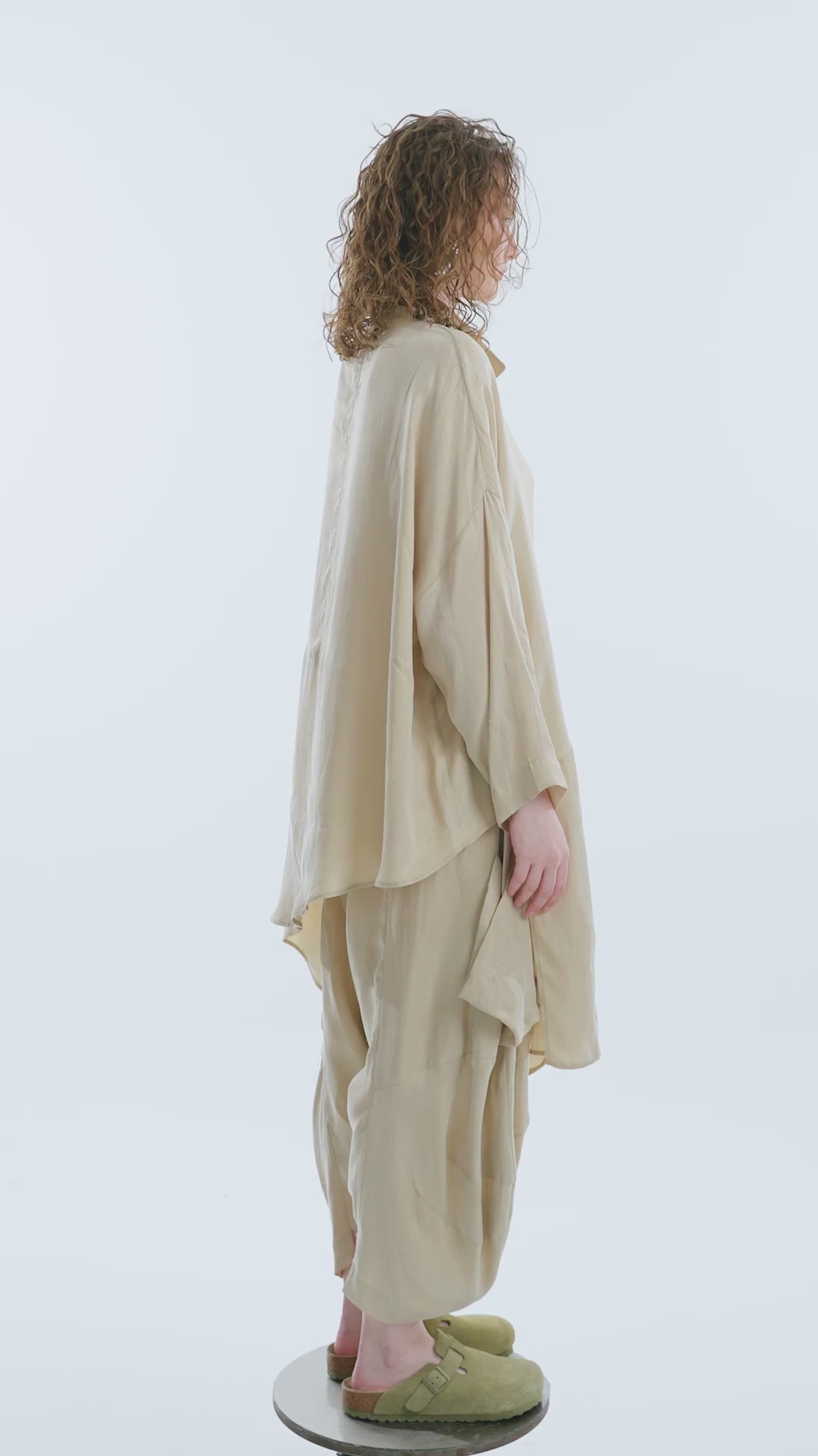 BEIGE FAR EASTERN CALIGRAPHY PRINTED ASYMMETRIC SHIRT