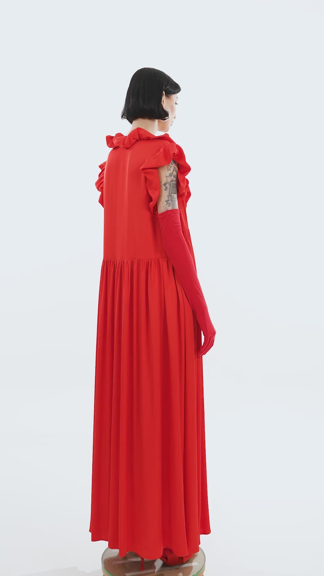 RED Ruffle DETAIL SHORT SLEEVE LONG DRESS