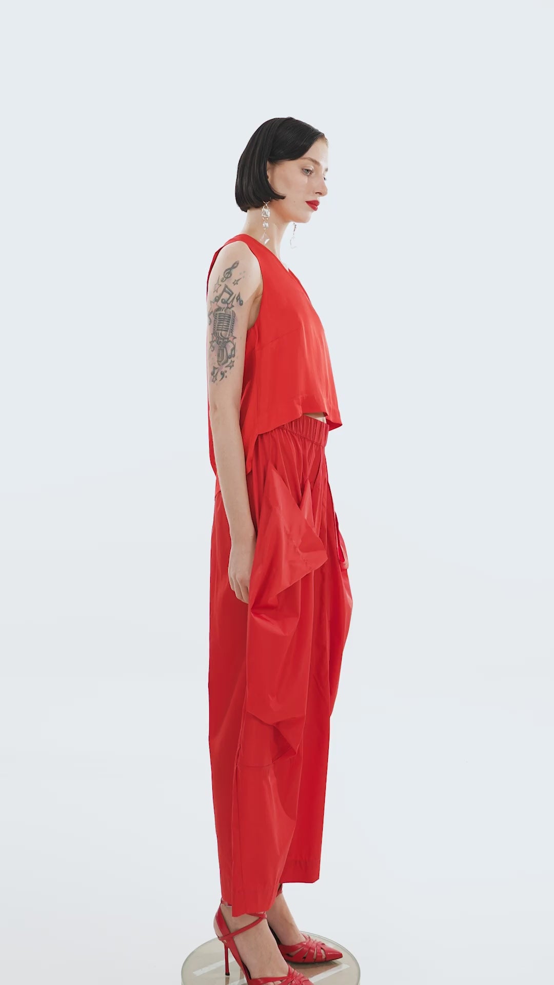 RED BAG POCKET WIDE LEG HAREM PANTS