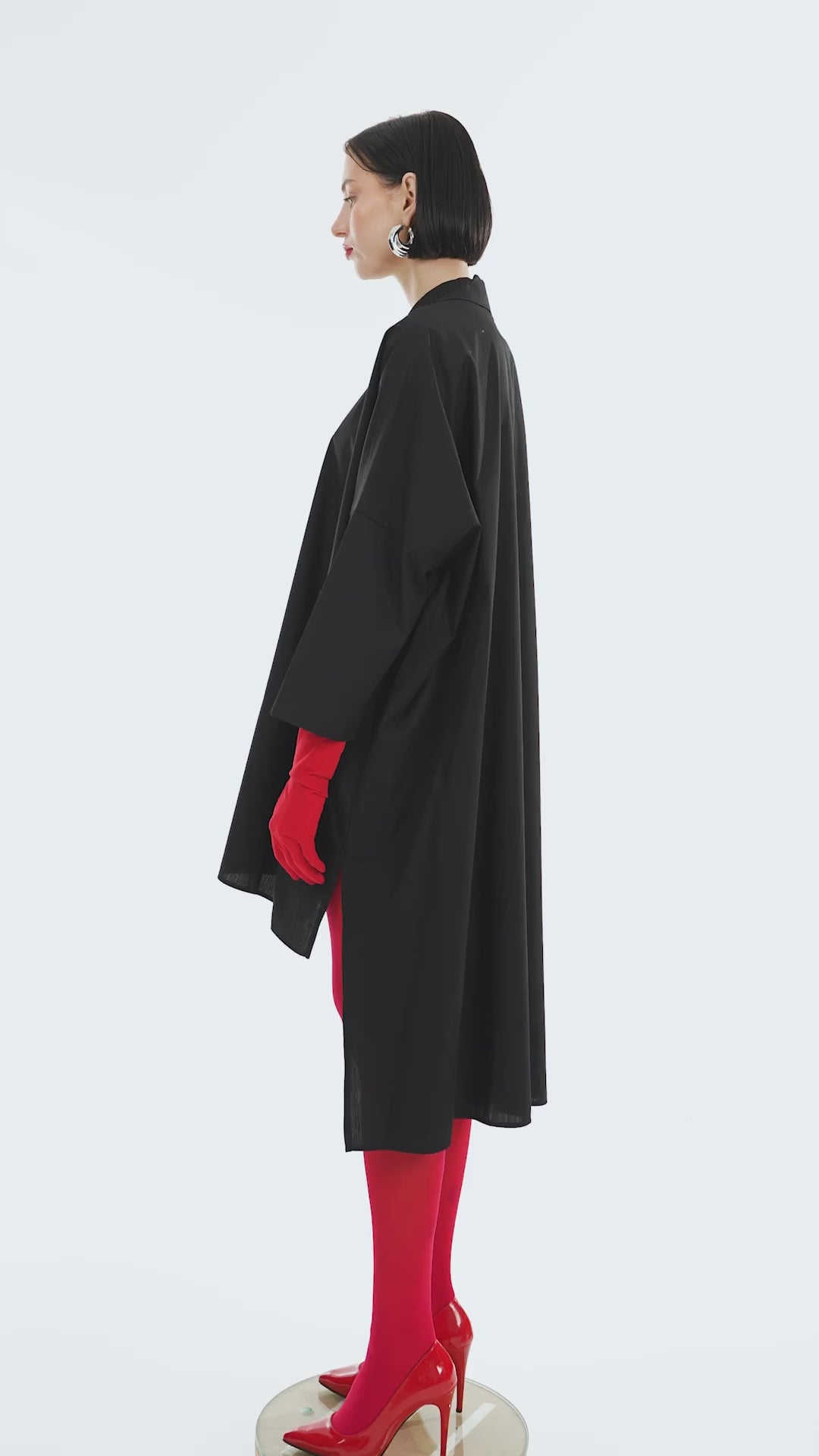 BLACK PARACHUTE FABRIC BACK ZIPPER COAT