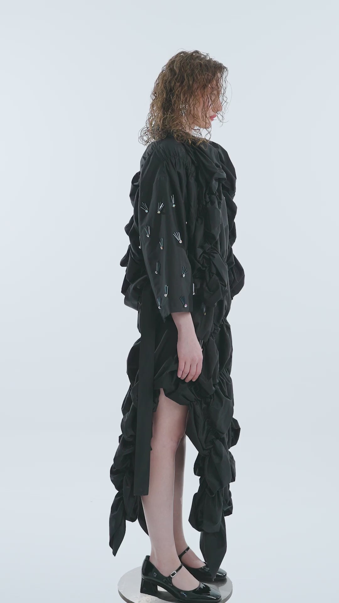 BLACK STONE EMBROIDERED PLUFFY SHIRRED SHORT JACKET
