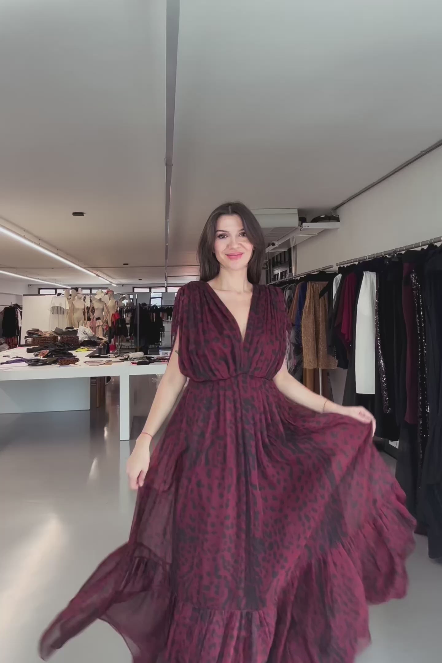 Zarafetin kadınlaştırılmış simgesi olan Madrid Elbise, güçlü bordo tonuyla baştan çıkarıcı bir şıklık sunuyor. Bordo rengin derinliği, leopar deseninin enerjisiyle birleşerek sofistike bir kontrast yaratıyor. Derin V yaka detayı ve hafif şifon kumaşı feminen bir duruş sergilerken, omuzlardaki bağcık detayları ve zarif pileler özgür bir hareket alanı sağlıyor. Etek ucundaki fırfırlar ise bordonun akışkanlığına eşlik ederek her adımda zarif bir dinamizm katıyor.