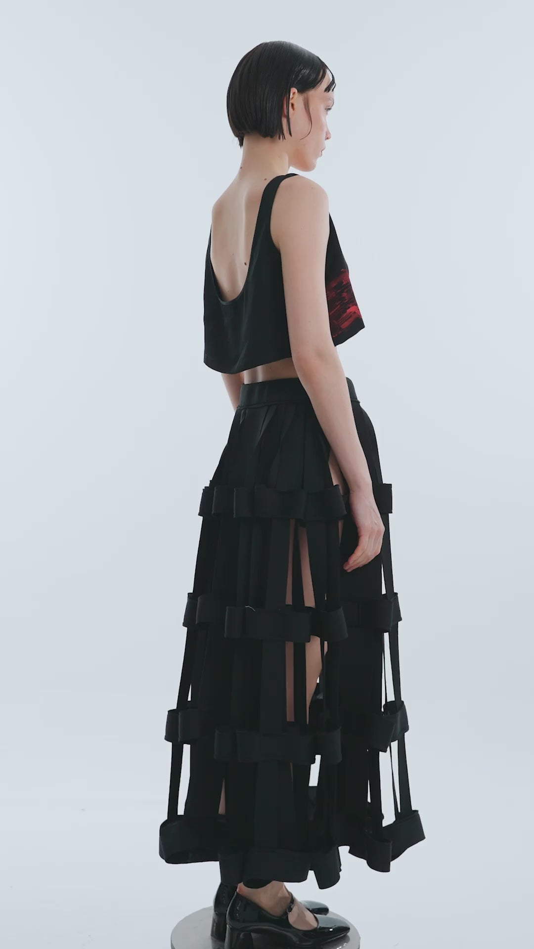 SİYAH ŞERİTLİ PENCERELİ SCUBA UZUN ETEK